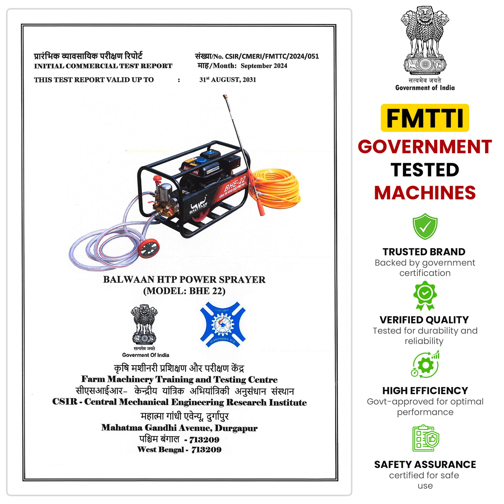 Balwaan Krishi BHE-22 Portable HTP Power Sprayer for Agriculture with 6.5 HP 4 Stroke Engine Suitable for Gardening, Agriculture Use, Get Free 50 meter Hose Pipe, 1 Engine Oil Bottle|BHE 22